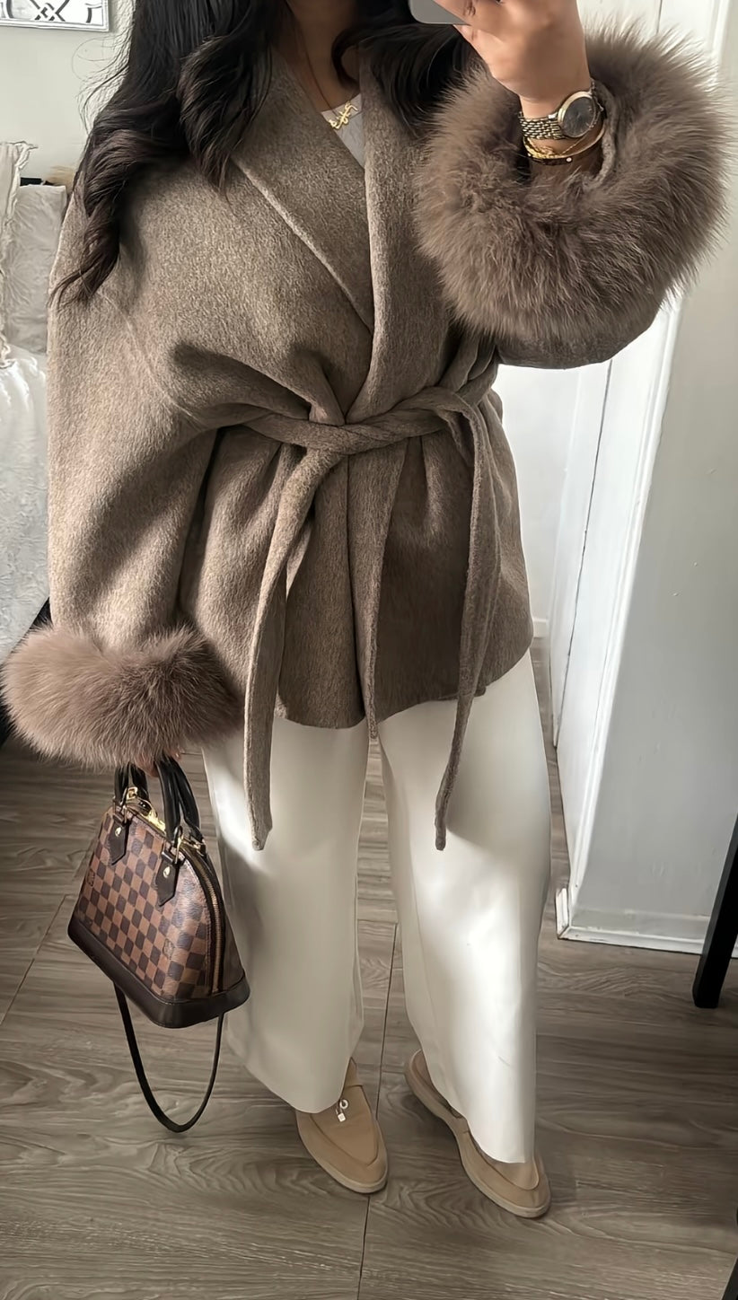 Wore it through two springs already and it still looks brand new. The wool doesn’t pill and the fur trim hasn’t lost its softness. A real statement coat