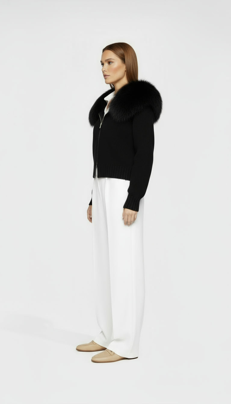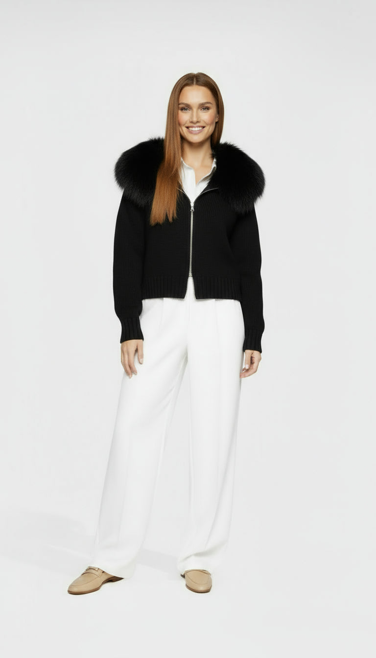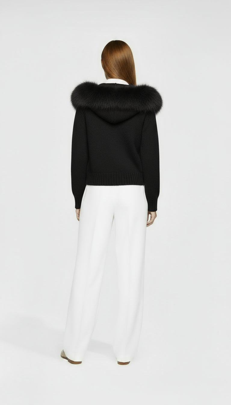 I wanted a mid-season knit that felt high-end but practical enough for everyday wear. The Cardí strikes that balance perfectly. It’s chic, cozy, and the removable fur hood makes it easy to dress up or down. It looks amazing with jeans or tailored trousers