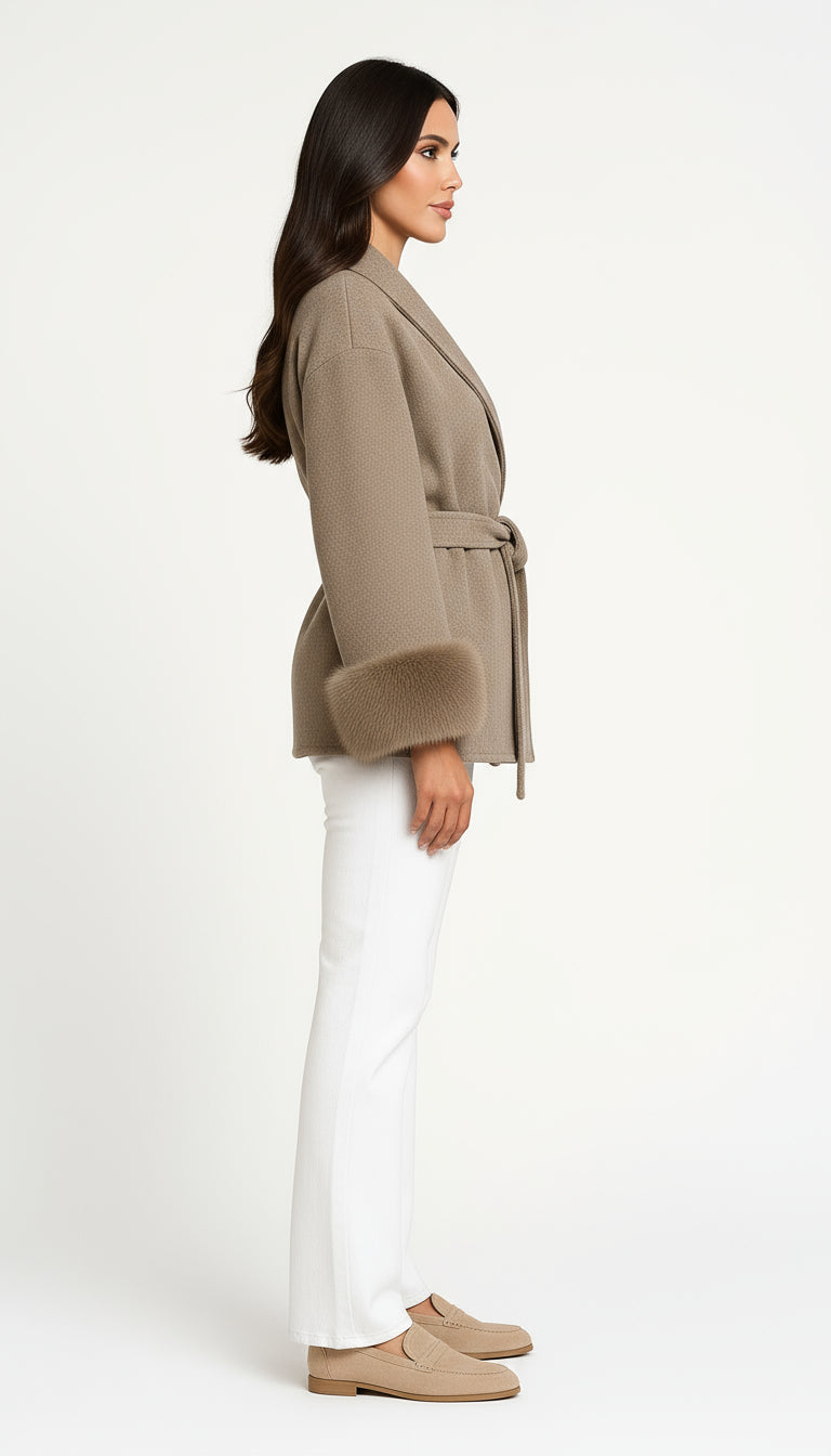 The Nomí has quickly become my go-to for transitional weather. It’s lightweight, tailored beautifully, and has such an effortless elegance to it. The fabric feels rich without being heavy, and the soft fox fur trim adds just the right amount of detail. I’ve received so many compliments wearing this to work and on weekends. It’s one of those timeless pieces I know I’ll wear for years.