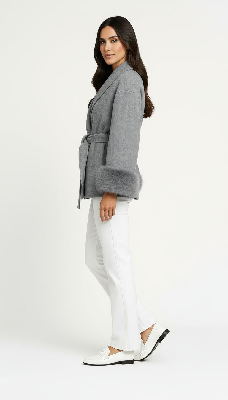 The Nomí has quickly become my go-to for transitional weather. It’s lightweight, tailored beautifully, and has such an effortless elegance to it. The fabric feels rich without being heavy, and the soft fox fur trim adds just the right amount of detail. I’ve received so many compliments wearing this to work and on weekends. It’s one of those timeless pieces I know I’ll wear for years.