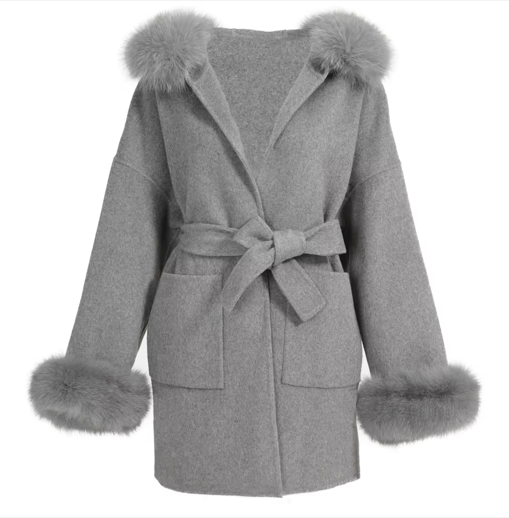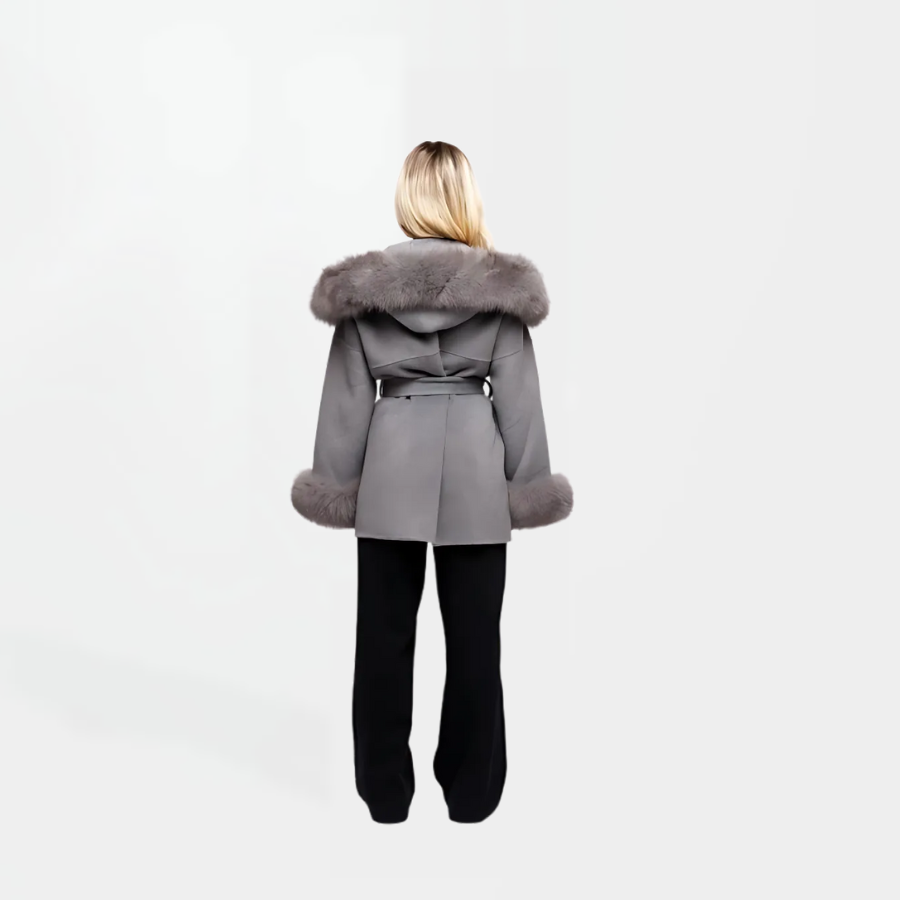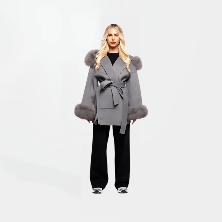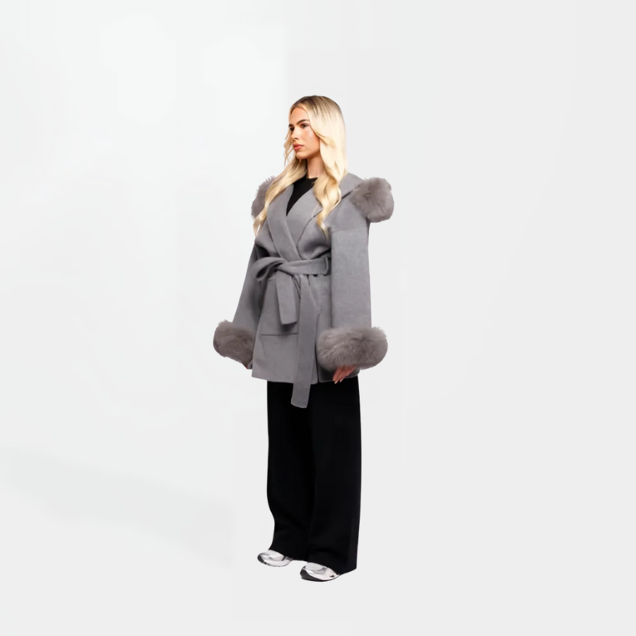The Tomí is gemaakt van 10% kasjmier en 90% wol en heeft een afneembare capuchon en manchetten van vossenbont, wat zorgt voor veelzijdige stylingmogelijkheden. De jas is voorzien van een riemsluiting en zakken voor een strakke afwerking en is verkrijgbaar in vier stijlvolle kleuren: beige, zwart, taupe en grijs.